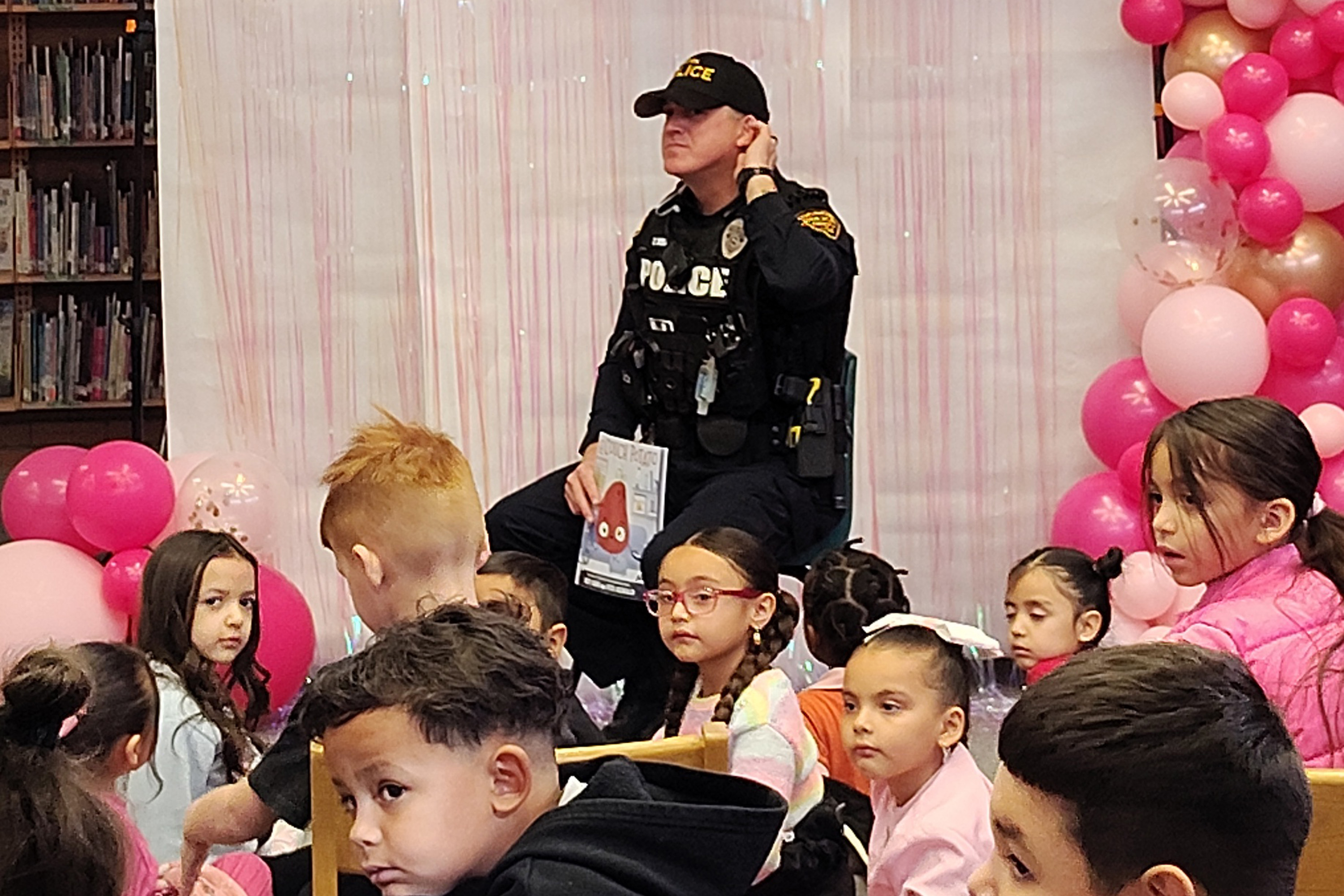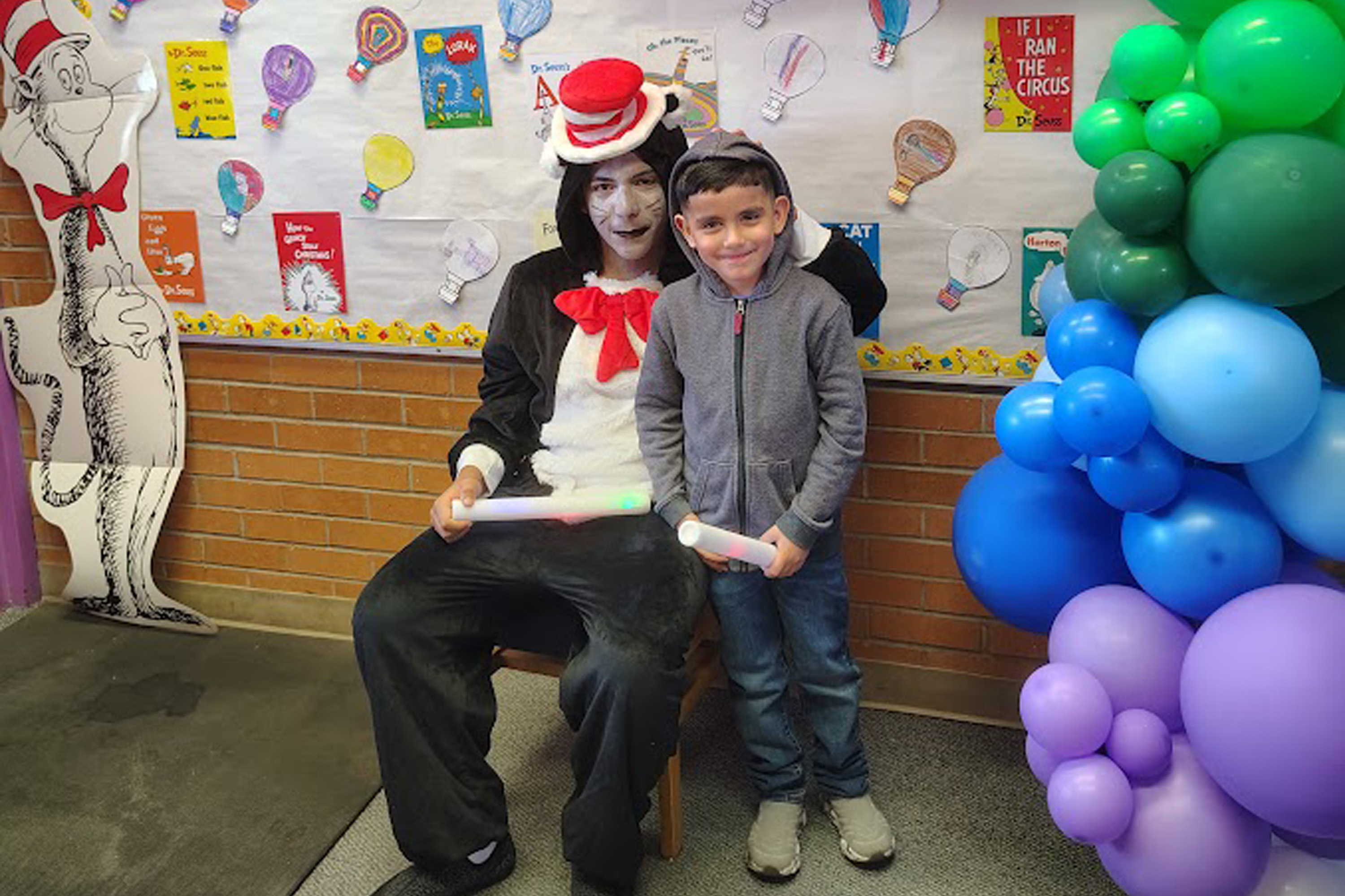 The library also comes alive through events that connect students and families in meaningful ways. Pueblo Gardens has celebrated Dr. Seuss’s birthday, honored its Welcoming Schools Award, and transformed the library into a mini theater for Love of Reading Week. During the holidays, families gather to enjoy festive stories and even a special visit from Santa.